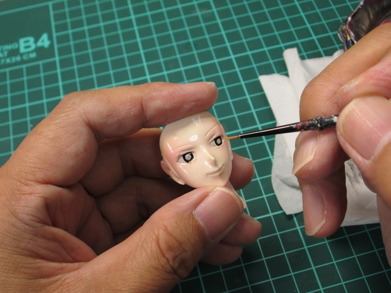 瞳は付属のデカールは使わず手書きにしました。(画像は瞳輪郭の拭取り最中)